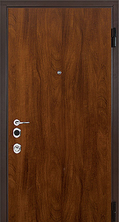 Толщина металла от 2 мм: дверь невозможно выломать или отжать за счет единой конструкции полотна и коробки, а также использования скрытых петель и противовзломных устройств.
